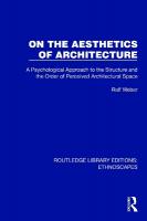 Originally published in 1995 as part of the Ethnoscapes: Current Challenges in the Environmental Social Sciences series, reissued now with a new series introduction, On the Aesthetics of Architecture is a result of an interdisciplinary study in architectural theory, psychology and philosophy and the author’s experience as a practicing architect. It tries to relate theories of aesthetics and recent advances in the psychology of visual perception to the practice of design.