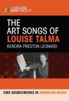 The Art Songs of Louise Talma presents some of Talma’s finest compositions and those most frequently performed during her life. It includes pieces appropriate for beginning, intermediate, and advanced singers and collaborative pianists. The songs include text settings of American, English, and French poets and writers, including Native