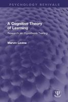 First published in 1975, A Cognitive Theory of Learning provides a history of hypothesis theory (H theory), along with the author’s research from the previous decade. The first part introduces the reader to contributions of some major learning theorists. It traces the history of H theory, reviewing the confrontation with conditioning theory, with the stress on the emergence of H theory which came to predominate. The second part describes the author’s work, presented as it emerged over time. It shows how the outcome of one experiment typically led to the next theoretical development or experiment. Originally part of The Experimental Psychology Series this reissue can now be read and enjoyed again in its historical context.