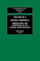 Introduction P.Z. Grossman and D.H. Cole 1. Is anything naturally a monopoly? P.Z. Grossman 2. The origins and development of electric power regulation R.L. Bradley, Jr 3. The "Regulatory Contract" D.H. Cole 4. The Zenith of the natural monopoly system P.Z. Grossman 5. Whither natural monopoly? J.P. Tomain 6. Universal service in competitive retail electric markets J. Rossi 7. Stranded benefits vs. stranded costs in utility deregulation R.W. Cearley and D.H. Cole 8. Why the music is off-key when lawyers sing from economists' songbooks or why public utility deregulation will fail A.P. Morriss 9. Does the end of a natural monopoly mean deregulation? P.Z. Grossman