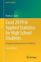 This textbook is a step-by-step guide for high school, community college, and undergraduate students who are taking a course in applied statistics and wish to learn how to use Excel to solve statistical problems. All of the statistics problems in this book come from the following fields of study: business, education, psychology, marketing, engineering and advertising. Students will learn how to perform key statistical tests in Excel without being overwhelmed by statistical theory.