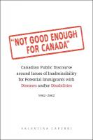 Not Good Enough for Canada investigates the development of Canadian immigration policy with respect to persons with a disease or disability throughout the twentieth century. With an emphasis on social history, this book examines the way the state operates through legislation to achieve its goals of self-preservation even when such legislation contradicts state commitments to equality rights.
