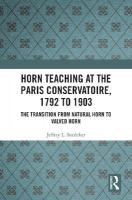 Using primary sources including Conservatoire method books, accounts of performances and technological advances, and other evidence, this book tells the story of the transition from natural horn to valved horn at the Conservatoire, from 1792 to 1903, including close examination of horn teaching before the arrival of valved brass in Paris, the initial reception and application of this technology to the horn, the persistence of the natural horn, and the progression of acceptance, use, controversies, and eventual adoption of the valved instrument in the Parisian community and at the Conservatoire.
