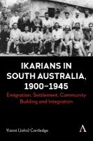 Ikarians in South Australia makes an outstanding contribution to the scholarship of emigration to Australia. By focusing on the first half of the twentieth century, this work opens up an unexplored and unexamined period in emigration history in innovative ways. It captures through a sophisticated analysis the centrality of emigration by Greek Aegean Islander communities and sheds new perspectives on the complexity of the Greek diaspora in Australia. Professor Joy Damousi, Redmond Barry Distinguished Professor, School of Historical and Philosophical Studies, the University of Melbourne, Australia