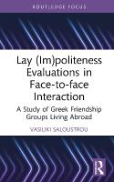 The book features the case study of Greek friendship groups living abroad and their coffee meetings to unpack how individual negotiate explicit and implicit, multimodal evaluations of im/politeness in everyday contexts. Data from audio and video interactional data, participation observation, and playback interviews allows for multi-faceted analysis. The volume combines a conversation-analytic interaction approach to im/politeness with an ethnographic perspective to offer a nuanced, holistic view of different forms of evaluation across a range of daily activities and participation frameworks, with implications for adopting this synthesized framework to elucidate new insights at the intersection of im/politeness and identities research.