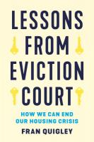 Fran Quigley provides a clear and emphatic prescription for how we can end evictions and homelessness in the United States, with the stories of struggling clients serving as the introduction for discussions of the reforms needed. Homelessness does not need to happen, nor do widespread evictions. They do not occur in other nations like in ours, and they did not used to not be the norm here in the US. Lessons from Eviction Court explains how we can end this national crisis.
