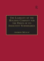 This work deals with the liability of the holding company for the debts of its insolvent subsidiaries. In analysing the current position under English law, the work challenges as outmoded and inadequate the virtual dogma that a holding company is not answerable for the debts of its insolvent subsidiaries.
