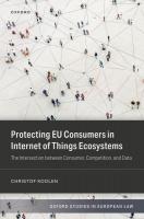 The number of devices being connected to the internet is growing rapidly. This trend--referred to as the Internet of Things (IoT)--reflects the gradual transformation of everyday objects into smart devices. These smart devices are capable of collecting data from their surroundings and sharing that data over the internet. As a result, the development of the IoT raises extensive legal questions from a consumer protection perspective. First, the functionality of smart devices challenges consumer autonomy and the average consumer's ability to make well-informed transactional decisions. Second, concerns remain about consumer choice as consumers can't easily switch due to interoperability limitations. Third, consumer privacy is threatened by the data-driven nature of the IoT. Protecting EU Consumers in Internet of Things Ecosystems explores solutions to these challenges by critically analyzing the interplay between EU consumer law, EU competition law, and EU data privacy law, aiming to balance innovation and consumer protection in IoT ecosystems. At a time when society must question how the benefits of IoT can be harnessed for the greater good--rather than posing a threat to consumers, businesses, and governments--this volume offers valuable insights for academics, policymakers, businesses, and anyone interested in understanding the impact of technology on our daily lives.