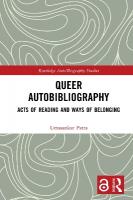 Queer Autobibliography undertakes a novel mode of analysis by coupling queer theory and autobiography studies by mobilizing current scholarship on queer relationality, queer time and narrative theory that will delimit the precincts of autobiography studies and queer theory.