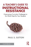 Standardized curricula and rigid approaches to teaching don’t engage students and don’t allow teachers to bring their true expertise to the classroom. But there is another path. Learn how to engage in instructional resistance to bring joy, purposefulness, and rigor back into your classrooms. In this empowering book, Paul S. Sutton shows how you can use your instructional expertise and skills to better serve students by resisting wrong-headed curricular mandates imposed upon you. He offers an instructional resistance framework that gives you a way to respond to the practices and policies you know are not in the best interest of your students. You’ll learn that you have more power than you think to question and critique the curricular mandates required by your district and school and to make small, actionable, yet powerful changes to your practice that will change your classroom culture and bring more fulfilling teaching and more engaged learning. Throughout, there are case studies, examples, tools, and strategies applicable to all grade levels so you can start to become the teacher you imagined yourself to be, starting the very next day. A Teacher’s Guide to Instructional Resistance is inherently empowering and hopeful. This book will leave you feeling ready to leverage your creative genius in service of all of your students.