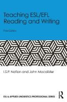 Teaching ESL/EFL Reading and Writing is designed for practising and pre-service teachers of all levels, and it is ideal for certificate, diploma, masters, and doctoral courses in English as a second or foreign language.