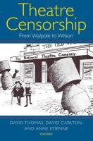 Using previously unpublished material from the National Archives, David Thomas, David Carlton, and Anne Etienne provide a new perspective on British cultural history. Statutory censorship was first introduced in Britain by Sir Robert Walpole with his Licensing Act of 1737. Previously theatre censorship was exercised under the Royal Prerogative. By giving the Lord Chamberlain statutory powers of theatre censorship, Walpole ensured that confusion over the relationship between the Royal Prerogative and statute law would prevent any serious challenge to theatre censorship in Parliament until the twentieth century.