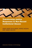 Over the last few decades, the issue of historical/ non-recent institutional abuses has resonated in a range of Western states and churches. Despite the recent proliferation of 'justice' responses to such abuses including prosecutions and civil litigation, inquiries, redress and apologies, it is a subject which is insufficiently understood in the literature. Set against the complexities of the legal, historical, cultural, and political realities of addressing non-recent institutional abuses, Transforming Justice Responses to Non-Recent Institutional Abuses critically examines these justice responses across Northern Ireland and the Republic of Ireland. Bringing together the voices of victim/survivors of non-recent institutional abuses with legal actors, academics, media professionals, and church and state actors on their experiences of justice processes, this book reframes discourses on accountability and responsibility and considers how to improve justice processes at the level of praxis and increase engagement between victim/survivors and institutional actors.Drawing on interdisciplinary literature related to restorative, transitional, and transformative justice and analysis of primary research, the book advances analysis of the role of innovative justice in this space and a new approach to justice which bridges the accountability gap between seeking and achieving justice for non-recent institutional abuses while improving outcomes for victims and survivors. This is an open access title available under the terms of a CC BY-NC-ND 4.0 International licence. It is free to read on Oxford Scholarship Online and offered as a free PDF download from OUP and selected open access locations.