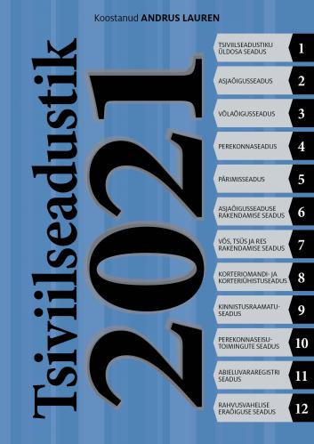 Kogumik “Tsiviilseadustik 2021” sisaldab Eesti tsiviilõiguse põhilisi õigusakte 1.veebruari 2021 seisuga. Käesolev kogumik järgib põhistruktuurilt oma eelkäijaid alates kogumikust “Tsiviilõigus 2002 & kommentaarid”, sisaldades Tsiviilseadustiku koosseisu kuuluva 5 seaduse kõrval ka nende rakendusseadused, kinnistusraamatu seaduse, korteriomandi- ja korteriühistuseaduse, perekonnaseisu toimingute seaduse ning rahvusvahelise eraõiguse seaduse. Andmaks terviklikumat pilti käsitletavast valdkonnast, on käesolevasse kogumikku lisatud abieluvararegistri seadus. Juhul kui konkreetse paragrahvi viimased lõiked või punktid on kehtetuks tunnistatud, siis ei ole kehtetusviidet toodud, võimaldamaks lugejal saada paremat ülevaadet kehtivast seadusest.
