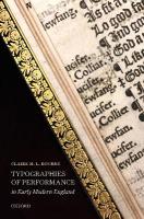 Typographies of Performance in Early Modern England is the first book-length study of early modern English playbook typography. It tells a new history of drama from the period by considering the page designs of plays by Shakespeare and others printed between the end of the fourteenth century and the beginning of the eighteenth century. It argues that typography, broadly conceived, was used creatively by printers, publishers, playwrights, and other agents of the book trade to make the effects of theatricality--from the most basic (textually articulating a change in speaker) to the more complex (registering the kinesis of bodies on stage)--intelligible on the page.