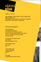 SISUKORD AUTORID LUULE Sveta Grigorjeva Karel Käärmann Mari Pihl Kristjan Müürsepp Martin Vabat Elisabeth Kaukonen Helen Hein Eda Ahi Warsan Shire (inglise keelest Carolina Pihelgas) PROOSA Karl-Henri Käämer Marianne Pitk Erki Lind Norman Kuusik INTERVJUU: TÕNIS VILU ARVUSTUSED Tõnis Parksepp: Kaur Riismaa, „Me hommikud, me päevad, õhtud, ööd” Linda-Mari Väli: Erkki Luuk ja c:, „Tammeöö” Eda Ahi: Paolo Giordano, „Algarvude üksildus” ILLUSTRATSIOONID Maari Soekov FOTOD Laura Kumpas Madis Katz RAAMATUTUTVUSTUSED VÄRSKE RÕHU TOIMETUS