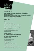 Sisukord LUULE Tõnis Vilu Joanna Ellmann Kristina Viin Kadri Pihlakas Vootele Ruusmaa Karl-Sander Erss Kelly Turk PROOSA Kristel Algvere Andrés Neuman Martin Vabat Federico Falco Tõnis Hallaste Triin Viiron INTERVJUU: Indrek Lõbus PÄEVIK: Terje Toomistu ARVUSTUSED Märten Rattasepp: Tõnis Tootsen, „Nukumeister” Mariann Tihane: Andrus Kasemaa, „Kustutamatud õhtud” Silvia Urgas: Andra Teede, „Käigud” Marvel Riik: Andrus Kivirähk Maailma otsas. Pildikesi heade inimeste elust ILLUSTRATSIOONID Mirjam Siim FOTOD Triin Rebane RAAMATUTUTVUSTUSED VÄRSKE RÕHU TOIMETUS